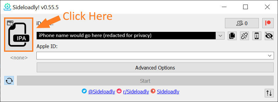 1. Open the Sideloadly app you installed in Step 1. If you get a prompt to restart Sideloadly, restart it and then it should be working.