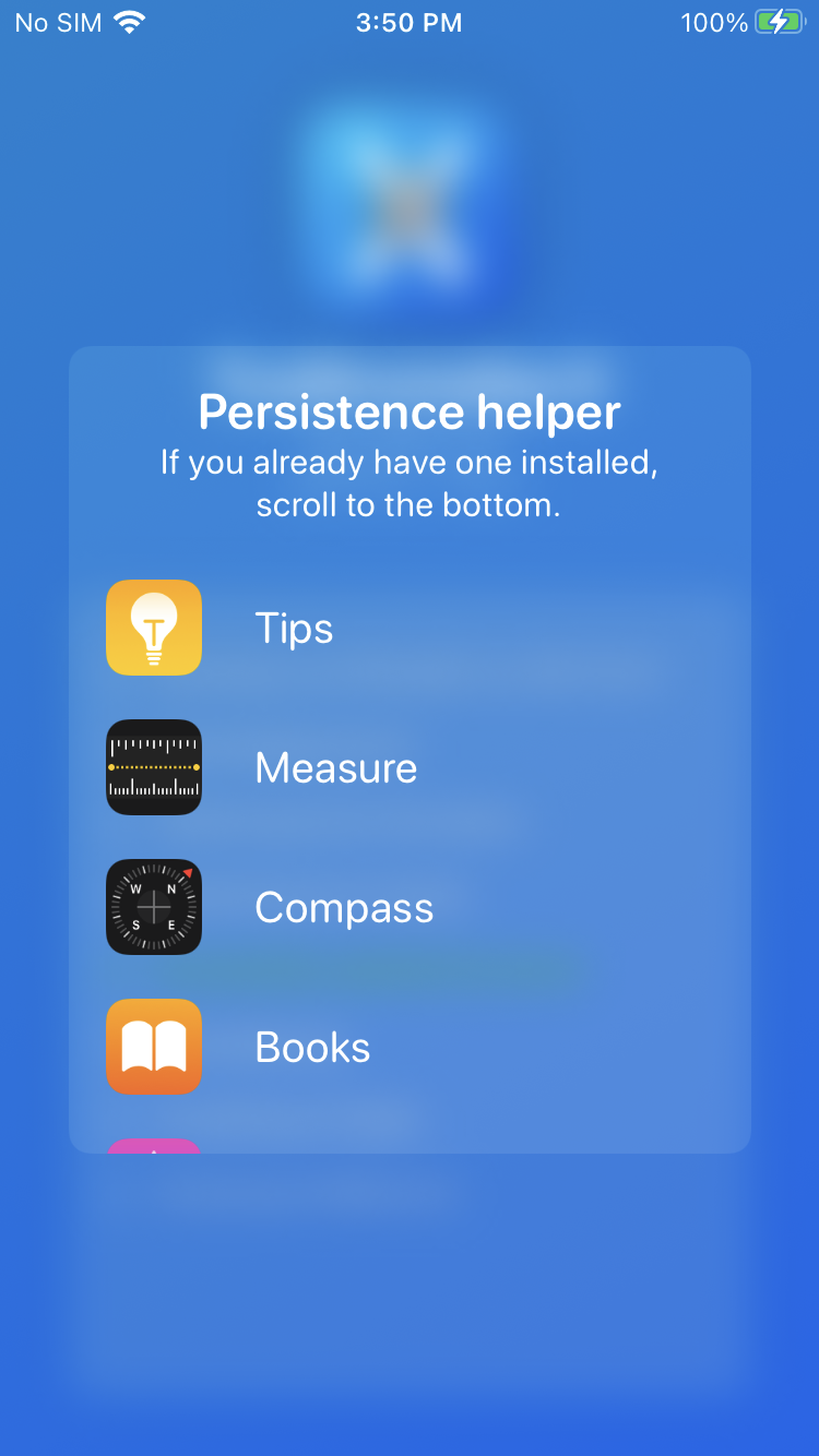 You should now be able to open the installer! Go ahead and press "Install TrollStore". When it asks for a Persistence helper, choose Tips.